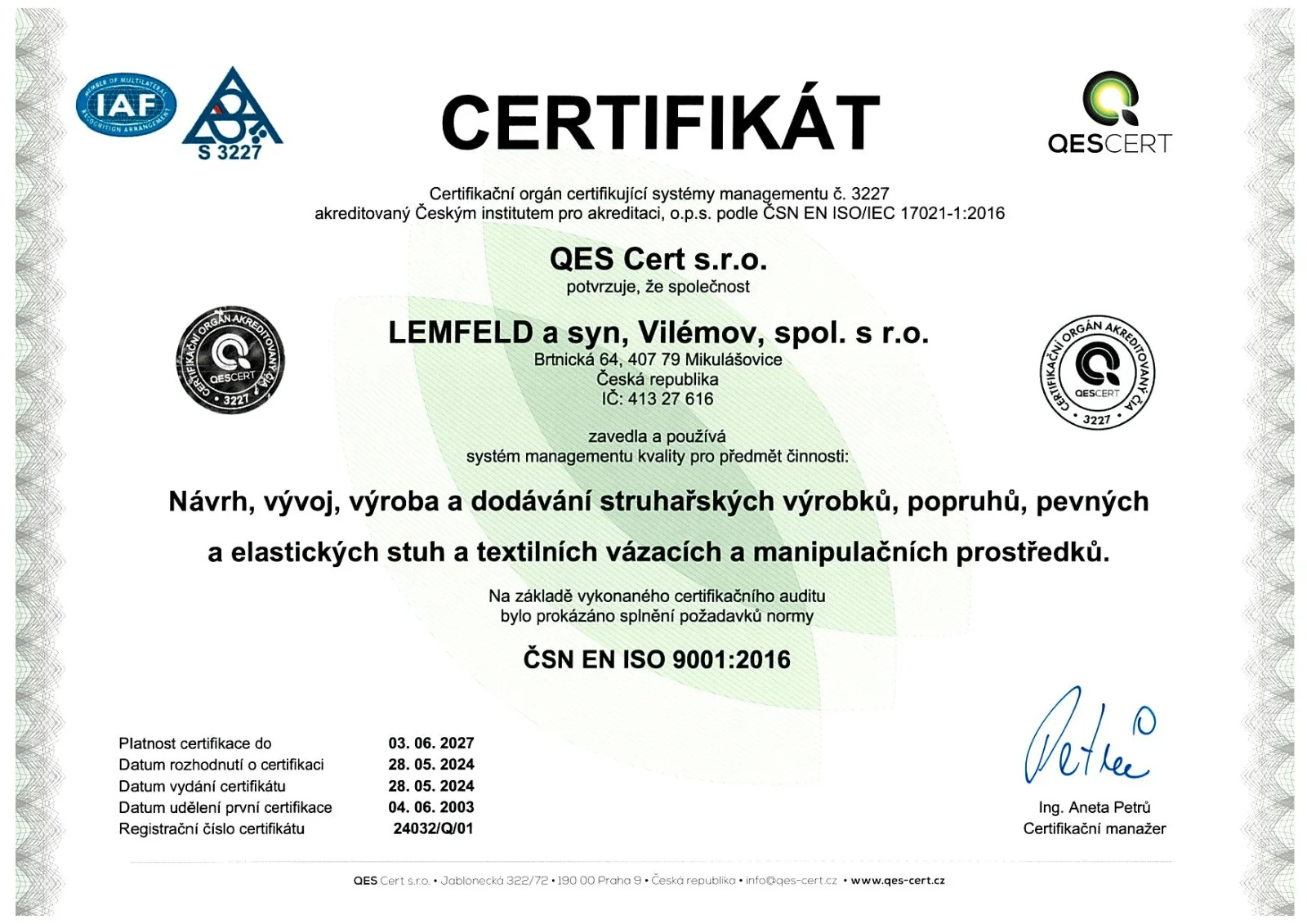 Lemfeld & syn, Vilémov, spol. s r.o., Brtnická 64, 407 79 Mikulášovice
